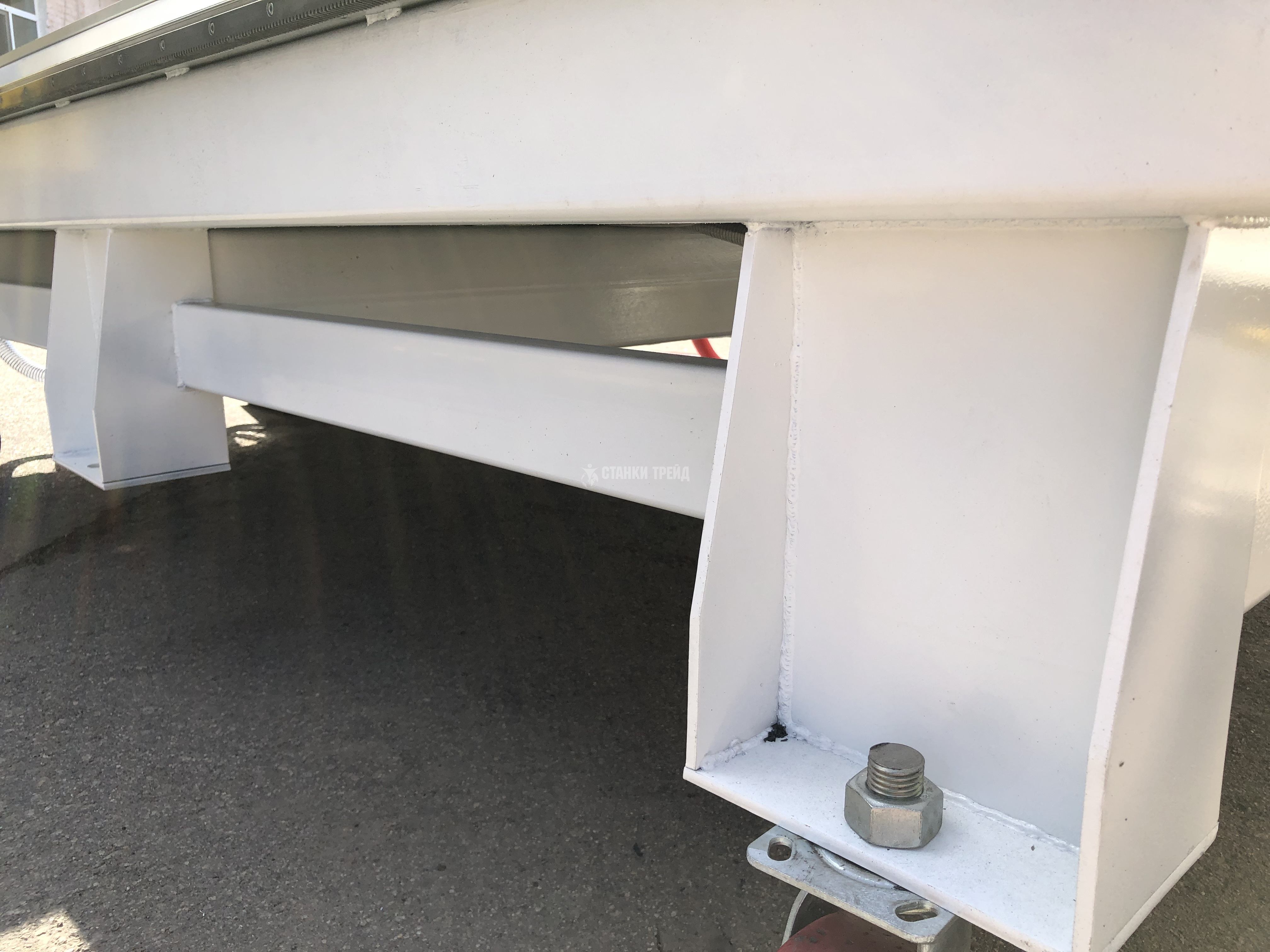 1) Весь станок построен из высококачественной российской профильной стали «СеверСталь» на нашем производстве в городе Ярославль. Это отличает его от китайских производителей, которые обуславливаются более низкой ценой станков, часто используют вместо профильной трубы обычный лист толщиной 2.3-2,5 мм, который они сгибают имитируя при этом профильную трубу с более большей толщиной. Проверить это можно только при разрезе или взвешивании станока отдельно. Также нужно знать, что чем тяжелее станок при прохождении границы, тем больше поставщик должен заплатить пошлину.