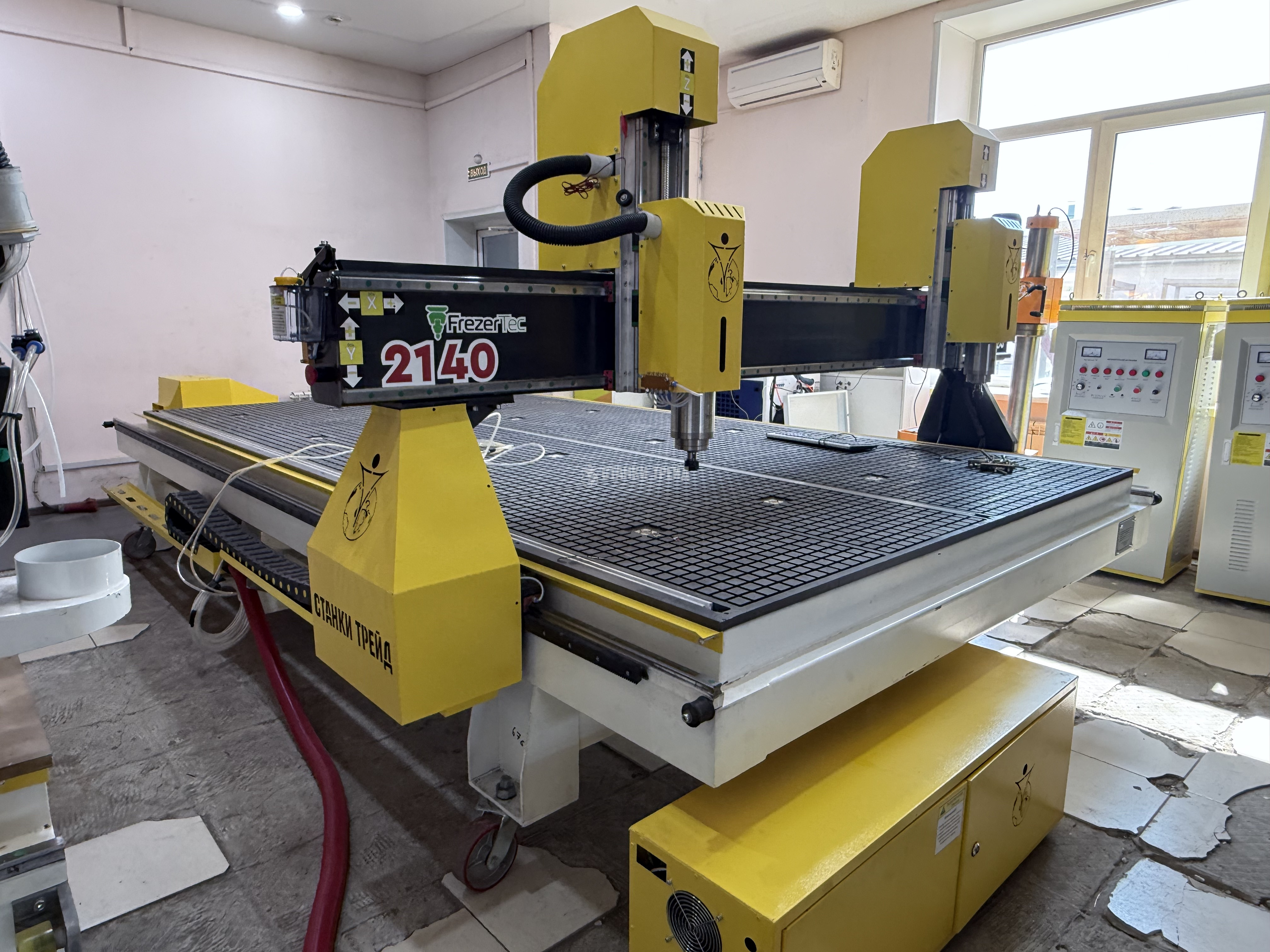 Frezertec 2140 отличается мощным шпинделем на 4.5 кВт, который поддерживает как водяное, так и воздушное охлаждение. Рабочее поле размером 2100×4000 мм и высота портала 300 мм (с возможностью увеличения до 400 мм) делают его универсальным выбором для обработки как крупных листов, так и сложных деталей. Вакуумный стол в сочетании с Т-пазами обеспечивает простое и надежное крепление заготовок.